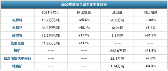 根据工信部数据,过去一年,我国“能源金属”镍、钴、锂,基本都出现了进口明显增加的同时,产品价格大幅上涨的状况。