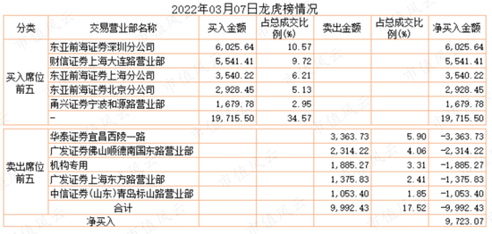 3月7日的龙虎榜现身,东亚前海证券有三家分公司现身买入前五,合计净买入1.25亿元。其中,东亚前海深圳分公司也是游资席位,近期来参与了兰州银行、同和药业、天亿马、中银证券、万孚生物、兰卫医学、吉翔股份等等炒作。