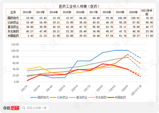 选取与中国医药在药品大类上基本一致、具备一定规模的药企进行对比。