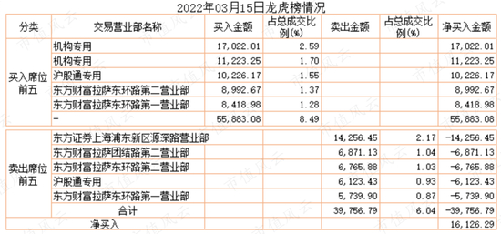 3月11日,东方证券上海浦东新区源深路营业部买入1.24亿元,随后3月15日,该营业部净卖出1.43亿元,2个交易日净赚1850万元。