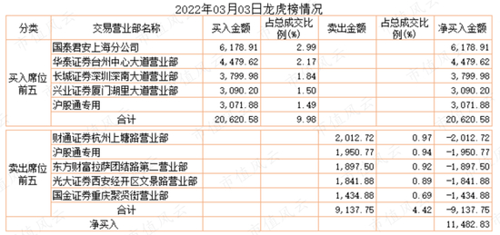 但当天净买入最多的是国泰君安上海分公司,净买入大6179万元,华泰证券台州中心大道营业部、长城证券深南大道营业部排净买入第二、三。