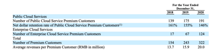 从招股书和财报数据来看,金山云将较大规模(年收入超过人民币70万元)的客户称为高级客户。