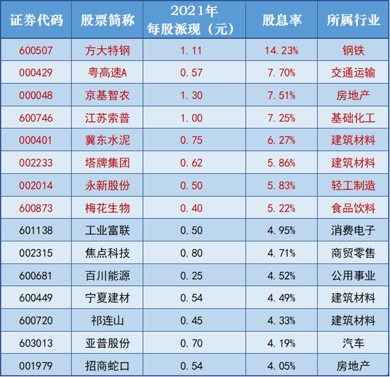 在一众公布了分红预案的公司中,方大特钢一枝独秀,以14%的股息率暂列第一。