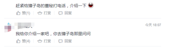有网友表示,“赶紧给獐子岛的董秘打电话,介绍一下”,“我给你介绍一下,你去獐子岛那里问问”