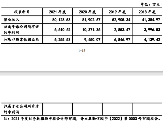 2018年、2019年、2020年、2021年,公司实现营业收入分别为4.14亿元、5.29亿元、8.19亿元、8.01亿元,扣非归母净利润分别为0.41亿元、0.68亿元、0.95亿元、0.63亿元。2021年营收、扣非归母净利润同比分别下降2.17%、33.80%。