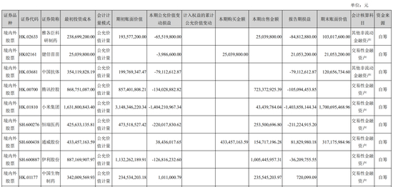 年报显示,2021年云南白药共投资了包括小米集团、腾讯控股、伊利股份、恒瑞医药、通威股份等在内的9只股票。
