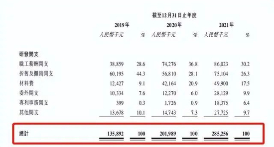 但从招股书上看,近三年研发投入分别为1.36亿、2.0亿、2.85亿,占营收比重分别为 7.84%、7.15% 和 4.18%,占比逐年下降。
