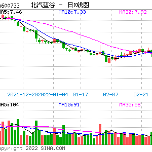 从二级市场来看,北汽蓝谷自2021年以来股价起伏明显,期间股价最低值为6.95元/股,较最高值19.87元/股,下跌65%。截至4月7日收盘,北汽蓝谷股价7.19元/股,市值308亿元,市盈率(TTM)为-5.9倍。