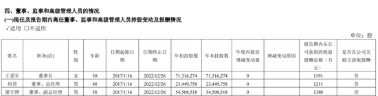 梅花生物年报显示,2021年,50岁的董事长王爱军女士的年薪高达1191万元,董事、总经理何君年薪1211万元,董事、副总经理梁宇博年薪1380万元。