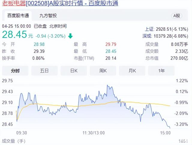 并且,从二级市场来看,老板电器股价已经从年初最高峰值40.61元/股,到截至4月25日收盘价28.45元/股,回撤近30%;如若相比较其2018年50.51元/股的最高峰值来说,回撤超过40%。