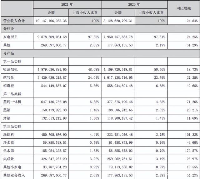 不过,老板电器的新产品短时间内仍撑不起大旗。据其2021年财报显示,其集成灶占营业收入比重仅为3.22%,收入仅为3.26亿元。