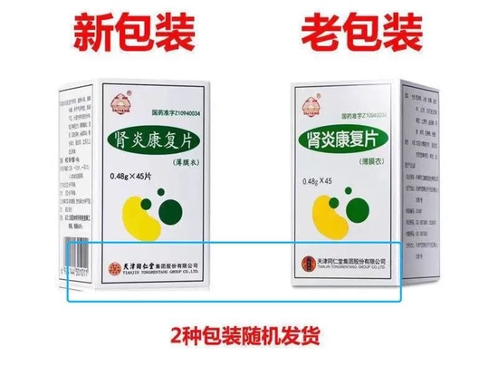 但在电商网站搜索天津同仁堂的拳头产品肾炎康复片,仍然可以看到带有“同仁堂”标识的药品在售,有的药店还特别注明“新老包装随机发货”。