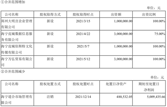 在2021年8月19日,皮革城投资公司以346万元购买了其1%的股权,加上此前持有的40%股权,购买后持有41%,为控股股东,将其纳入合并报表。民间融资中心是海宁市唯一一家民间融资服务企业,主要从事民间资金供需双方的匹配业务,声称致力于缓解小微企业融资难和民间资金投资难两难问题。