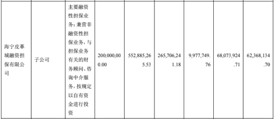 皮城担保2021年营业收入为997万元,净利润却为6236万元。海宁皮城赚的担保费为942.45万元。