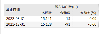 股东户数方面,截至2022年3月31日,爱仕达股东人数为1.514万户,较上期(2021年12月31日)增加了0.09%。