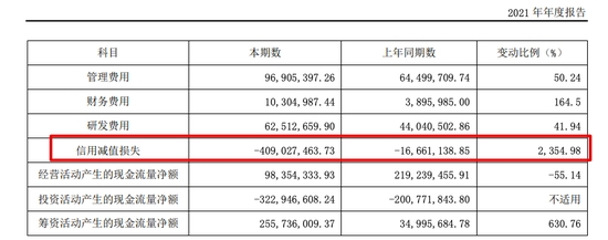 值得一提的是,年报披露,报告期内,我乐家居信用减值损失为4.09亿元,较上年同期增长2354.98%。