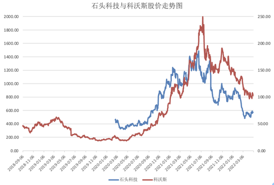 图 | 石头科技与科沃斯股价走势图
