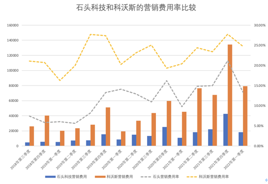 图 | 石头科技与科沃斯的营销费用率比较