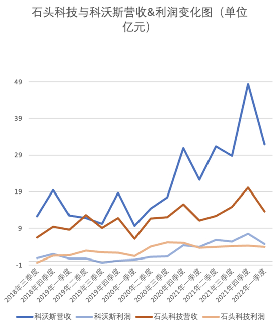 图 | 石头科技与科沃斯营收和利润变化图