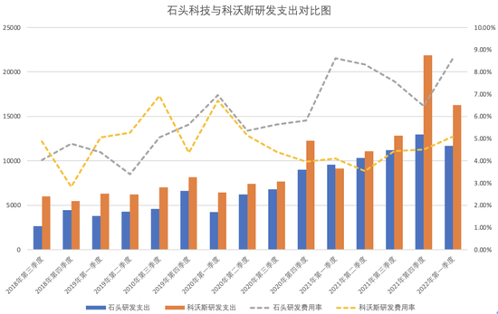 图 | 石头科技与科沃斯研发支出对比图