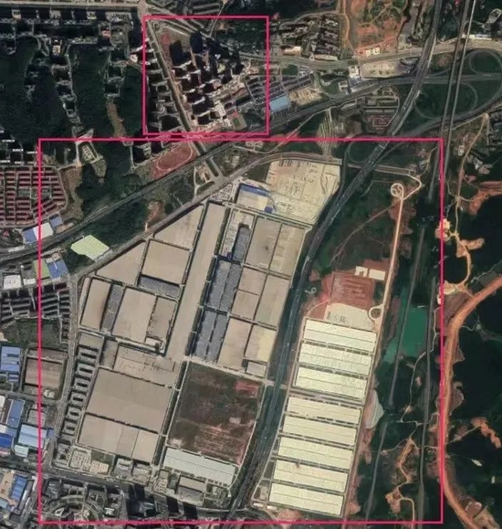 地图显示,长沙比亚迪雨花区工厂紧邻居民楼,最近的直线距离约为50米。