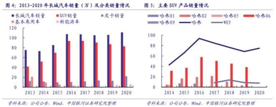 从农用车改装到造皮卡,再到发力SUV,并且果断雪藏轿车业务,三次关键转折让长城汽车从众多国产汽车包围中脱颖而出,按过去的成长经历来看,我们很轻易能得到这样一个结论:长城的崛起,最先是魏建军凭借市场洞察力选到了好的赛道,后来又凭借着爆款车型吃到了最大的市场红利。(3)