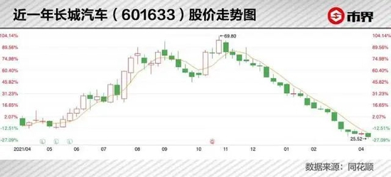 而就在去年10月,长城汽车的股价曾攀至69.8元高点,仅仅过去了半年多,长城汽车股价就暴跌66%,市值蒸发4300亿元左右,并使持股34.5%的实控人魏建军损失约1400亿身家。