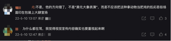5月10日,农夫山泉茶π包装被部分网友质疑“美化马戏团大象表演”,随后#农夫山泉被指包装美化大象表演#登上微博热搜榜。有网友留言抵制动物表演,要求更换包装;但也有网友认为只是艺术海报,保护动物应该抵制马戏团而不是抵制品牌。