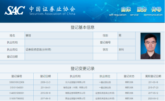 据公开资料显示,裴培于2020年3月12日在国金证券离职,券商从业近11年,在其5年的分析师职业生涯中,曾获第一届新浪金麒麟最佳分析师传媒行业第七名。