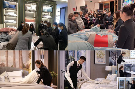除了产品外形精致奢华,产品定价相对高昂外,富安娜的线下门店也无不透露着别具一格的气质。