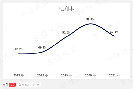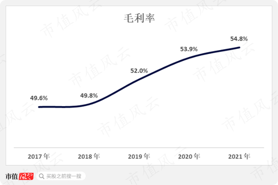 倘若统一口径,将2021年的“运输成本”从的“营业成本”中剔除,那么毛利率将达到近五年来的最高水平54.8%。