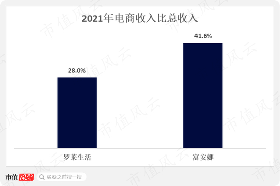 倘若把富安娜的线上销售和当今家纺行业的老大罗莱生活(002293.SZ)进行比较,则会发现双方的收入结构存在明显差异,富安娜的电商收入占比明显高于罗莱生活。