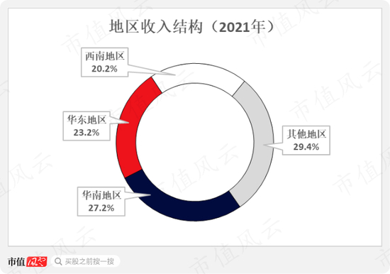 公司最主要的收入来源地为华南、华东地区,二者在总收入中占比超过50%,而华南、华东地区也正是我国经济较发达,人均消费能力较强的两个地区。