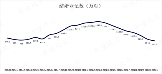 而2021年的结婚登记对数已经下降到了763.6万对,创下近20年来的新低,人们对购置新家纺的需求有明显减少,这也将是影响家纺公司业绩的重要原因之一。