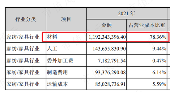 对家纺行业,原材料通常是营业成本中占比最大的部分。