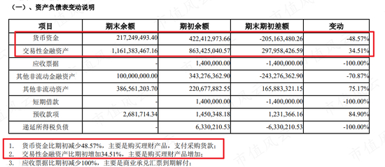 原因是公司将现金用去购买理财产品,因此虽说货币资金减少了,但是交易性金融资产也相应增加。