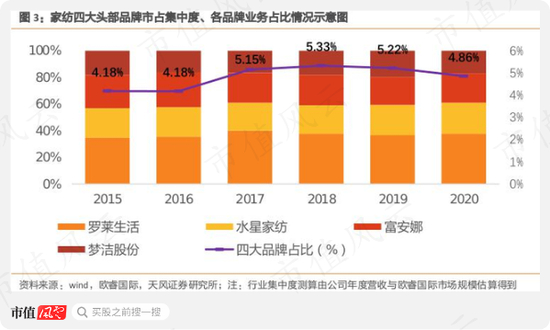 2020年四个品牌的合计市占率不到5%,这也意味着消费者在选择家纺产品时替代品极多。