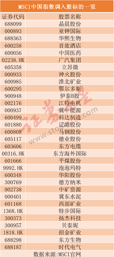 MSCI最新调整结果公布:谁被选中 谁被抛弃?(附名单)