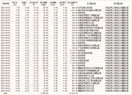 显然他们的折价率基本相同,不少席位买入数量也相同,这说明其试图通过众多的接盘营业部隐藏行踪。但是,相同的折价率与成交数量又透露出这些席位的背后可能存在同一个利益方控制。