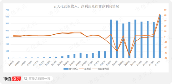 云天化在2011-2020年前后十年间净利润亏损近50亿元,扣非净利润亏损更是接近百亿。
