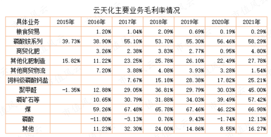 饲料级磷酸钙盐、聚甲醛、磷矿石等合计达38.5亿元,这几项业务毛利率比较高。