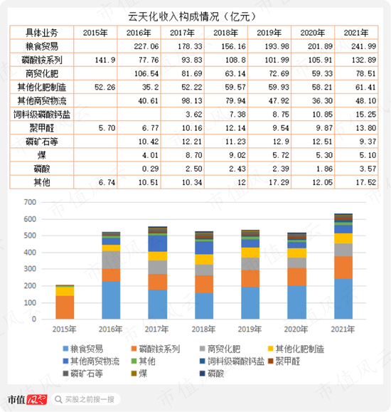 除贸易业务外,磷酸铵系列产品是其收入来源,2021年接近133亿元;