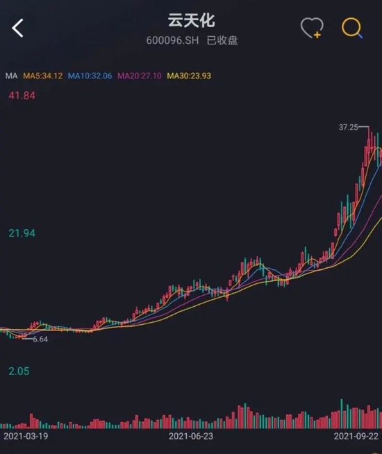 这也就使得云天化含“磷”全系列产品毛利率显著提升,云天化股价从2021年二月上旬6.3元左右启动,到9月中旬一度涨至37.25元。