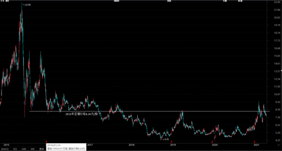 2017年4月开始,云天化股价开启了长达3年的下跌趋势,股价一度触及4.25元,以化投资的账面浮亏一度超过8亿元。