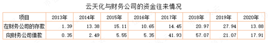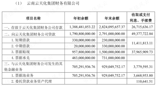 上市公司跟关联方云南云天化集团财务有限公司(以下简称“财务公司”)有着非常频繁的资金往来。