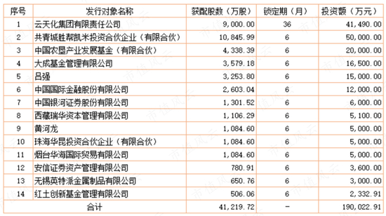 2021年1月15日完成登记,当日云天化收盘价5.87元/股,参与定增的机构当日即有27%的账面浮盈。