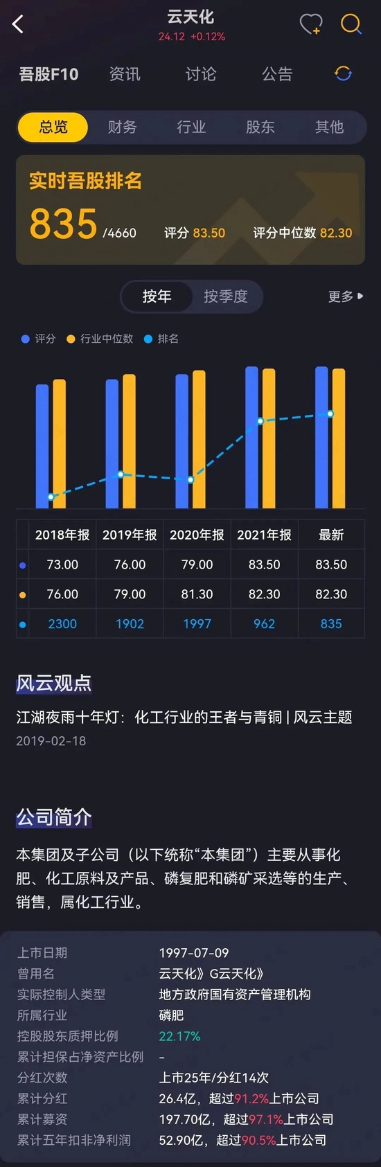 自上市以来,云天化(600096.SH)累计募资约198亿元,而累计派息分红仅仅26亿元。