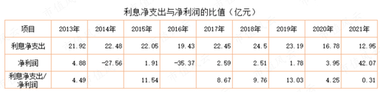 巨额贷款导致上市公司的财务费用非常高,2013年至2019年的利息净支出均在20亿元以上,是净利润的几倍,甚至是十几倍,即便是在2020年,利息净支出仍是净利润的4.3倍。