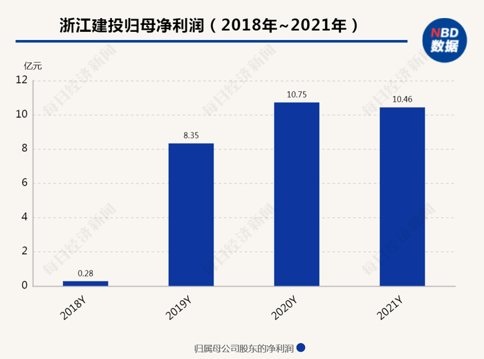 有意思的是,在今年2月以前,浙江建投作为一家“平平无奇”的地方性基建企业,尽管营收增长较快,2021年接近千亿,利润也维持在10亿水准,但股价却波澜不惊,长期维持在8元线以下。