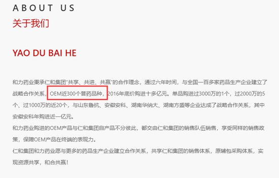 据仁和药业子公司和力药业官网显示,公司合作的医药公司超百家,OEM产品超300个,涵盖药品、保健品、药妆、医疗器械等诸多领域。